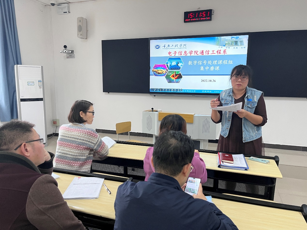 根据学校及电子信息学院教学评估整体工作安排,为进一步提高所有教师的专业素养和教学能力,夯实各位教师驾驭课堂的基本功,落实学校教师迎评计划,通信工程系于2022年10月26日在6106教室组织数字信号处理课程组全体教师开展了教师集中磨课活动。