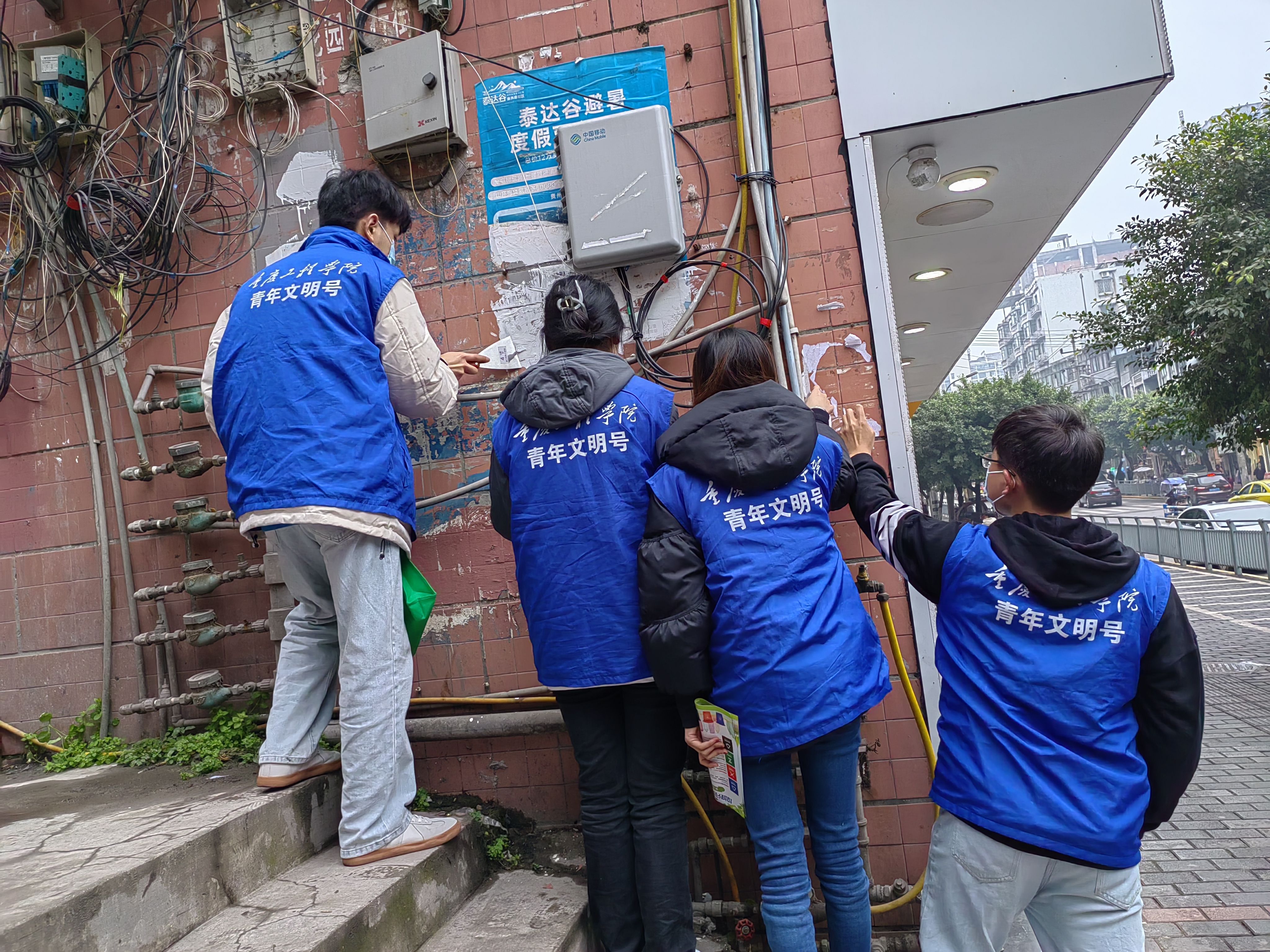 此次活动采取“1+1+5”的模式,由1名社区网格员和1名小组长带领5名学生志愿者深入独居老人楼栋和家里,对独居老人的居住环境进行清洁。志愿者们身穿重工蓝色志愿服,手拿抹布、扫帚、拖把,弯着腰、认真仔细地清洁地面、整理衣物,特别是对窗户、油烟机等死角区域进行重点清洁;同时,对楼栋的牛皮癣等顽固垃圾进行清理。