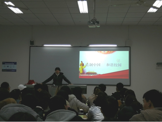 全国法制宣传日又是国家宪法日,首先辅导员涂祖玲就中华人民共和国宪法的定义以及法制宣传日的意义和目的进行了讲解,让同学们了解到何为宪法和宪法的地位。我国是建设社会主义法治中国,全面坚持依法治国。然后辅导员对现在的校园违法案和校园暴力事件进行了分析,重点强调,作为学大生,要知法,懂法,护法和尊重法制,更要遵纪守法,防微杜渐,做到“要坦白、立大志、慎交友、敢维权、善慎独”。只要同学们自觉遵守各项纪律,增强法制观念,重工的校园一定是和谐美好的。最后,因临近期末,辅导员再次强调了诚信考试的重要性以及期末考试复习的相关问题,希望大家能努力考个好成绩。