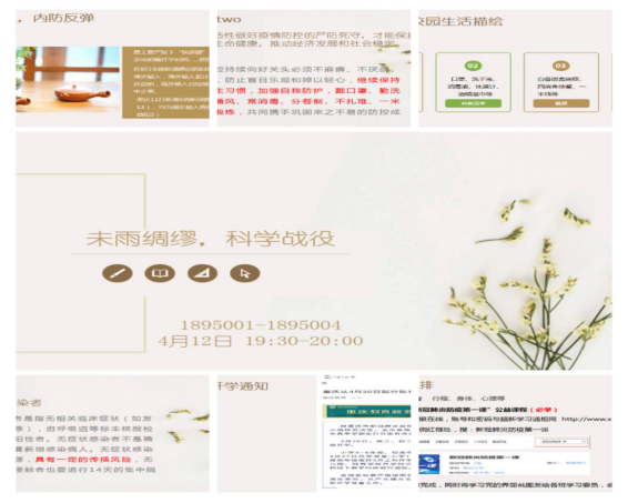 未雨绸缪,防患于未然。班会上,辅导员周林平从以下四点娓娓道来:首先做好对无症状感染者的防范,她告诉同学们要加强自我保护和提高健康文明意识,强化环境卫生及个人防护,养成勤洗手、戴口罩、常通风消毒、保持安全社交距离的好习惯;其次,疫情在国内得到了一定的控制,社会各行各业进入复工复产,武汉也已经“解封”,人口向全国各地流动,她提醒同学们此时此刻一定要做到“外防输入 内防反弹”,有所流动必须及时上报;随后,她结合重庆市教育局已经发布分批开学日期,提醒同学们虽然高校开学时间并没有明确通知,但大家要做好回校上课的准备,如:口罩、消毒液以及回校前的一些承诺书等;最后,她告诉同学们疫情虽有好转,但仍要学好“新冠肺炎防疫第一课”。