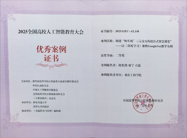 会上,我校教师积极交流经验、展示成果,充分展现了重庆工程学院在人工智能教育领域的教学改革成效与创新实践能力。此次获奖体现了学校在人工智能教育教学研究方面的坚实基础与持续创新,也彰显了教师团队在推进教育数字化转型和“AI+教育”深度融合中的积极探索与成果。