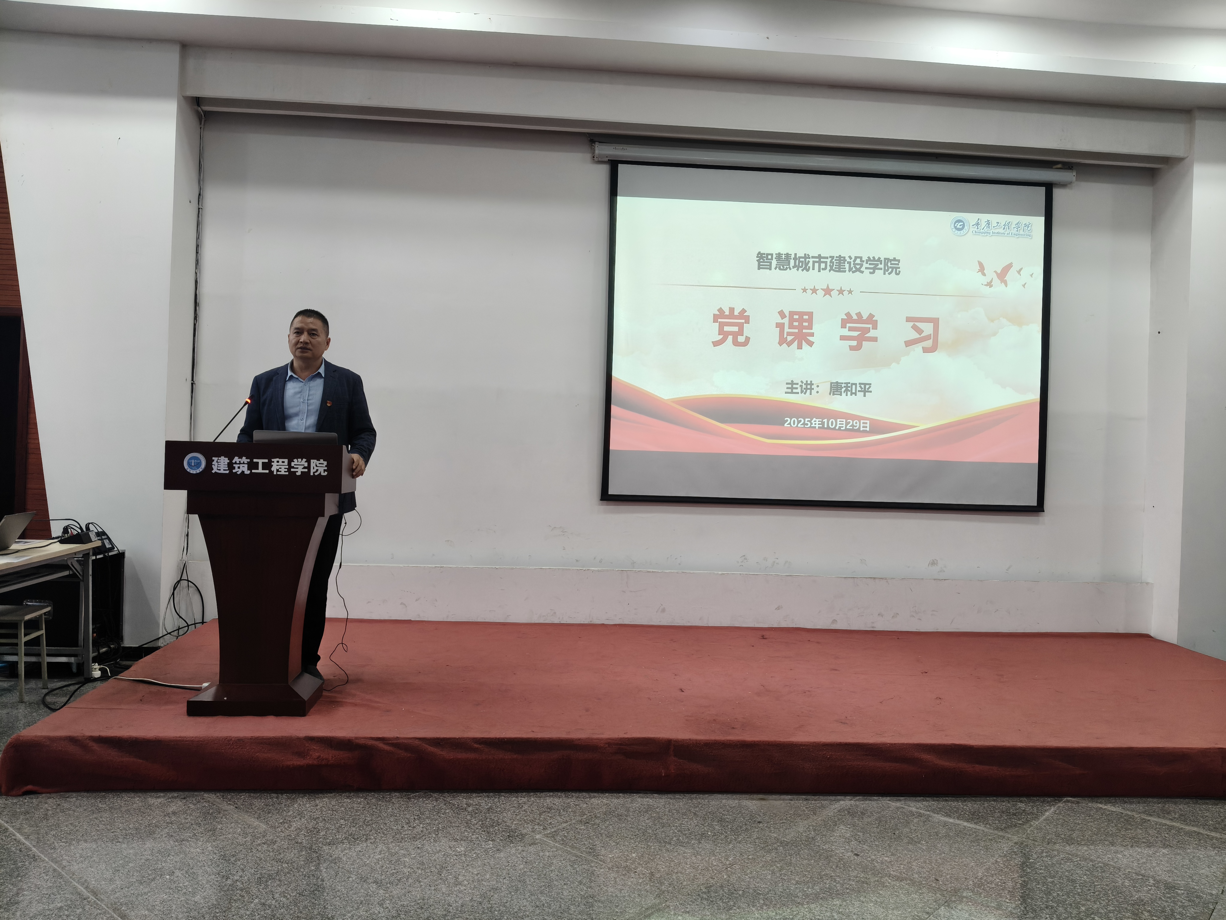 随后,学院党总支书记唐和平同志以“学习中国共产党第二十届中央委员会第四次全体会议公报”为主题开展专题党课学习。党课内容紧扣中央精神,深入解读“十五五”规划重要部署,引导党员增强政治自觉和理论素养,筑牢思想根基。