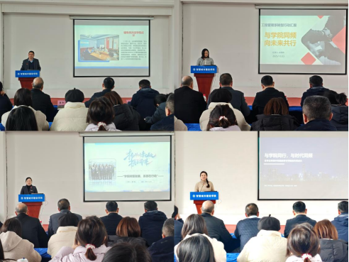 会议伊始,学院党总支书记唐和平围绕学院更名转型,从“识变、应变、求进、展望”四方面汇报,剖析知识迭代等四大挑战,提出强化思想引领、学风建设等应对举措。工程管理系主任安雪玮以“与学院同频,向未来共行”为主题,分享了系部在专业转型中的思考与行动,基于企业调研数据提出“一体两翼”发展模型,从课程体系重构、教学模式变革、师资队伍建设及产教深度融合等方面介绍改革举措,并提出破除专业壁垒、优化评价机制等支撑需求。