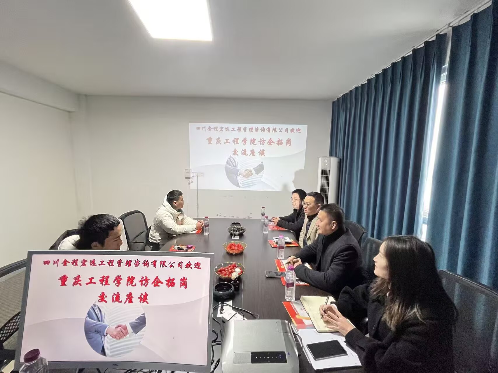 本网讯(文/图 元云丽) 为拓展学生实习与就业渠道,深化产教融合,1月23日上午,智慧城市建设学院院长雷江、党总支书记唐和平、土木系主任林俊、就业科长元云丽一行走访四川金程宏远工程管理咨询有限公司,开展访企拓岗交流并签署实习就业基地协议。