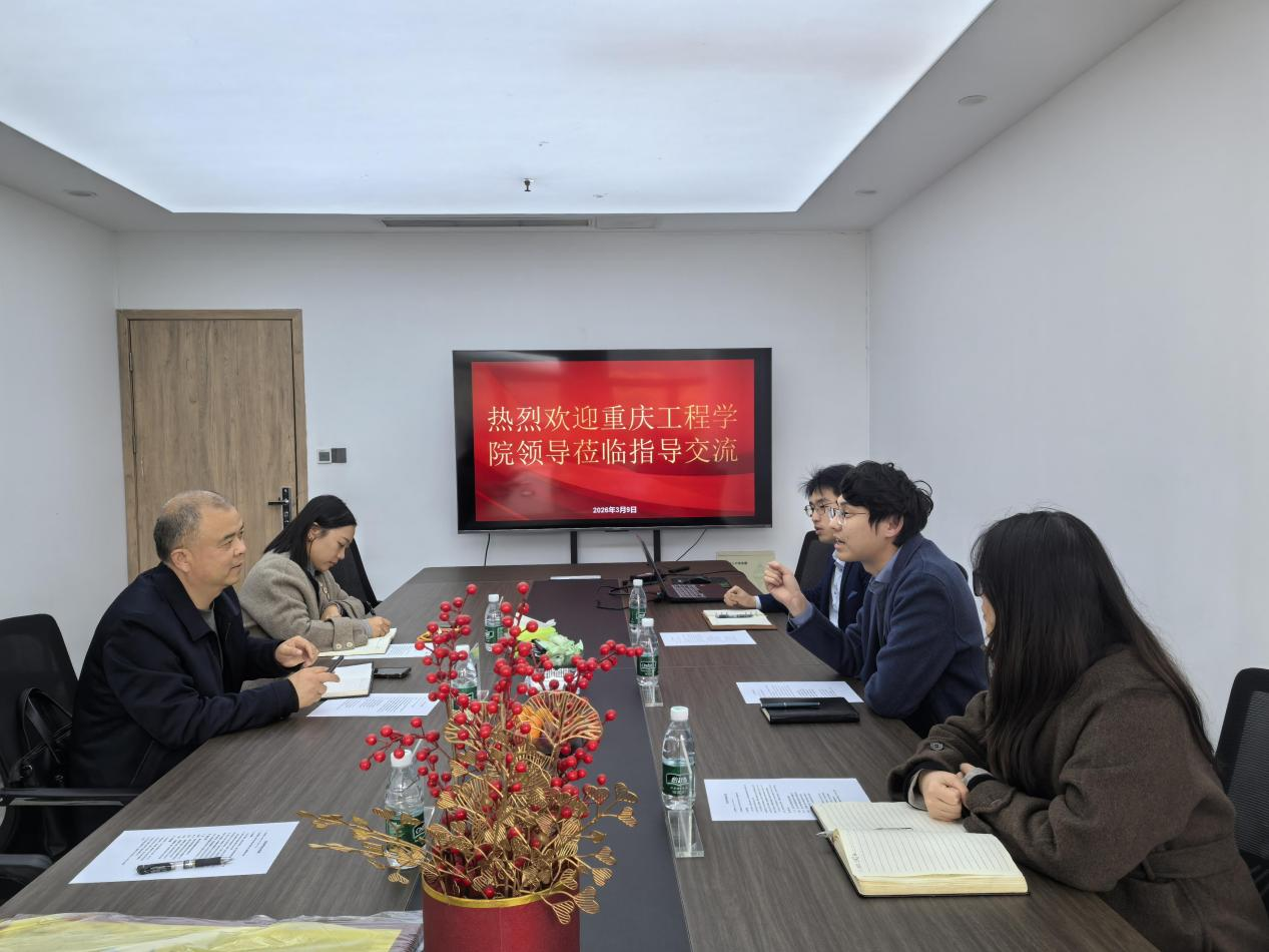 本网讯(文/图 曾赟) 为深化产教融合、促进校企协同育人,重庆工程学院智慧城市建设学院与蜜蜂数联(重庆)智能科技有限公司于3月9日下午在重庆市两江新区信达国际蜜蜂数联会议室召开校企合作交流会议。学院副院长王强、工程管理系主任安雪玮、副主任曾赟,以及企业总经理张南杰、市场总监杨文泰、项目经理王相蓥等核心人员参会。