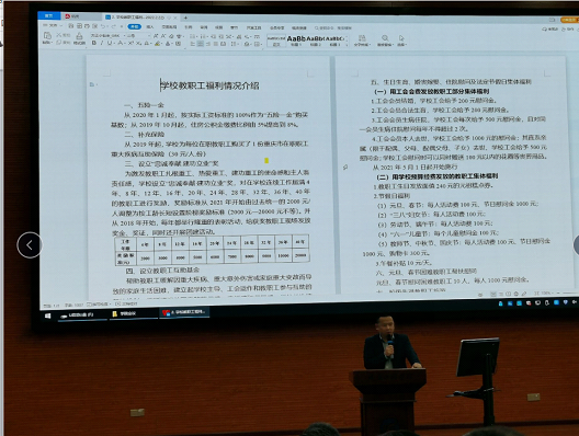 党总支书记覃华伟着重强调了就业工作对学院工作的重要性和紧迫性。他指出,做好就业工作,既是对学校的负责,也是对学生的负责,希望全体老师用真心注真情,扎扎实实把就业工作做细做实。随后书记还宣贯工会工作相关文件。