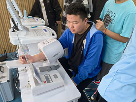 英极联协会成员代表给学生们热情示范了各“5G+”项目的具体操作方法,引导学生深入体验,且在此过程中由胡特老师担任“专业答疑员”,一一解答学生们的问题,调动学生思考动脑、协调动手的综合能力。