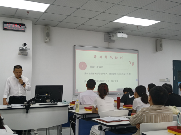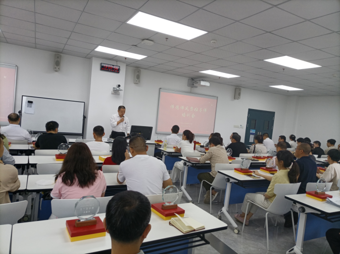 本网讯(文/图 雷仕英) 师德是教师的立业之基,从教之要。为深入贯彻习近平总书记关于教育和师德师风建设的重要论述精神,切实加强教师师德师风建设,规范教师职业行为,进一步增强广大教师“为党育人、为国育才”的责任感和使命感,打造适应新时代的教师队伍。5月17日下午,计算机与物联网学学院全体教师齐聚71101,开展“师德师风暨班导师”专题培训。