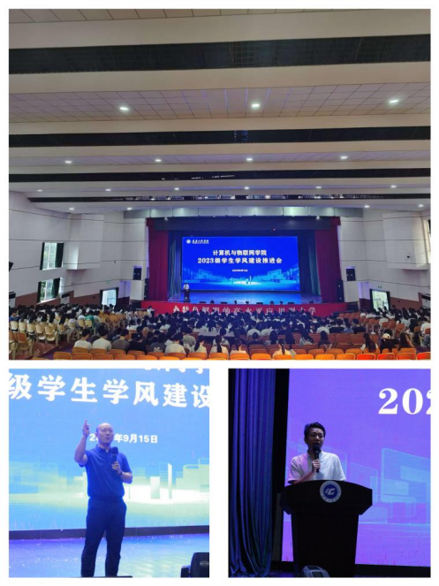 本网讯(图/罗浩 文/苏炳燕)结合学校学风建设整体要求,为进一步强化2023级学生学风建设,助力学生明确学习目标、科学规划发展方向,9月15日晚,计算机与物联网学院于学术报告厅召开2023级学生学风建设推进会。学院班子成员、专业教师代表、辅导员代表及2023级全体学生共同参会,为大三学子的学业发展与职业规划“保驾护航”。