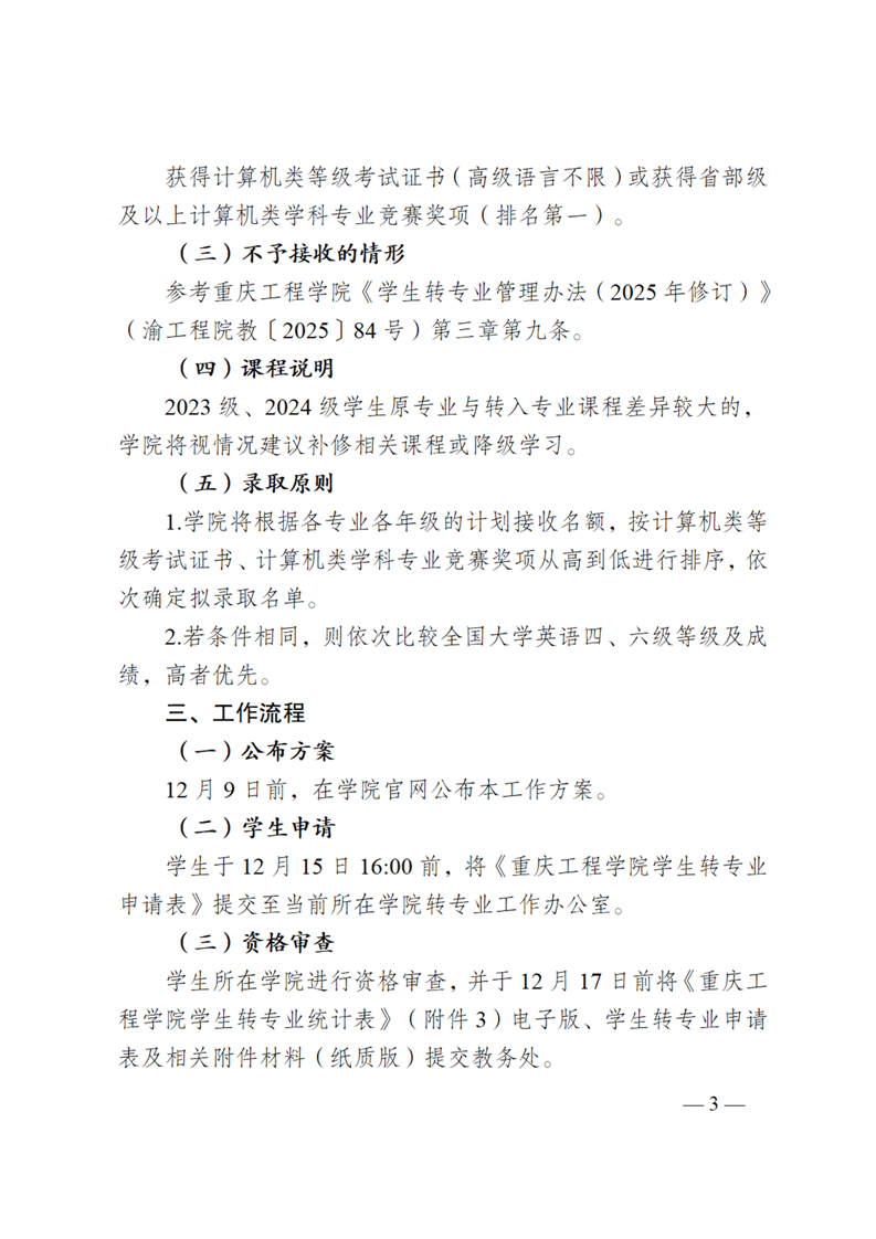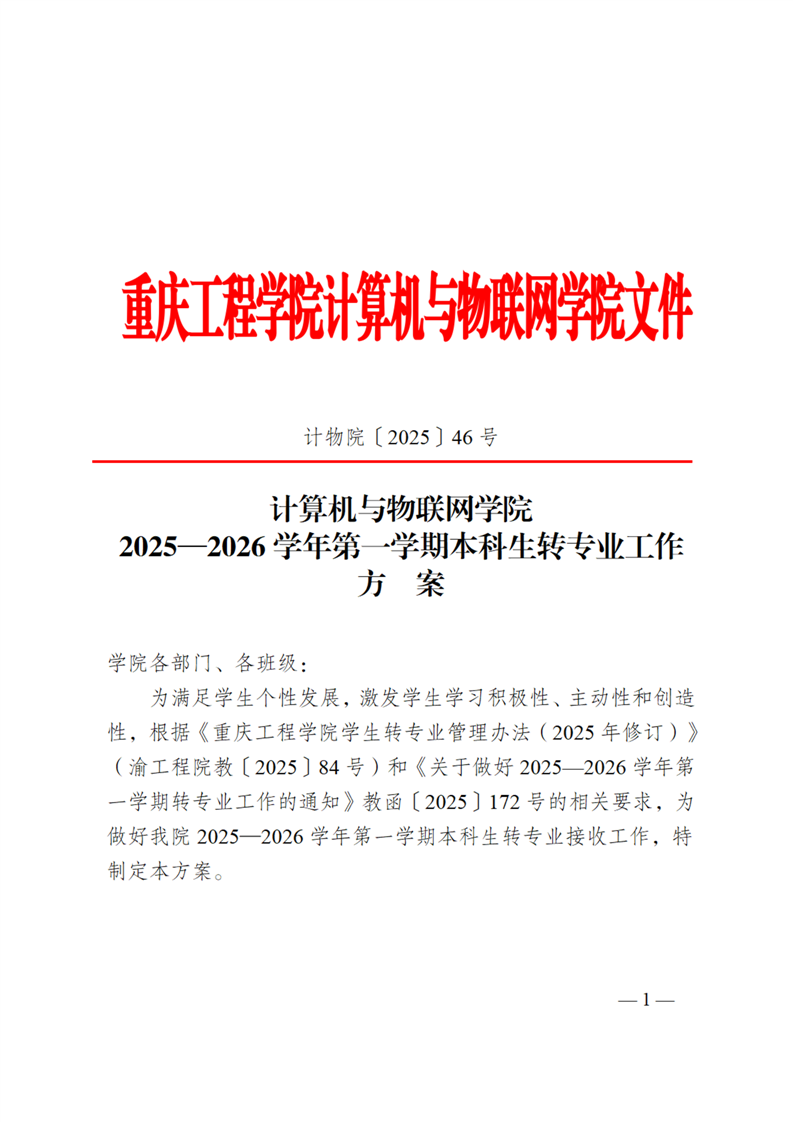 计算机与物联网学院 2025—2026学年第一学期本科生转专业工作方案