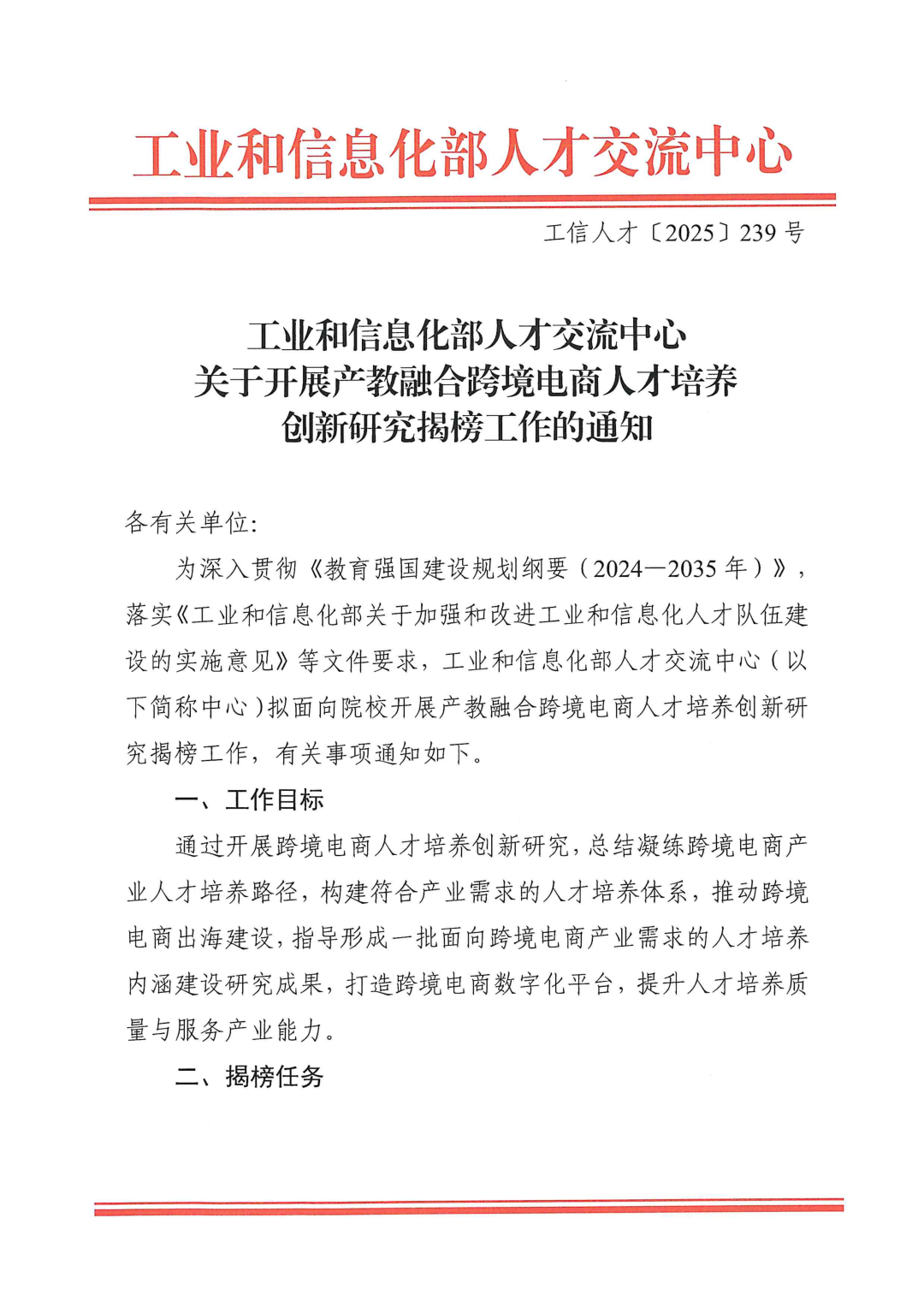关于开展产教融合跨境电商人才培养创新研究揭榜工作的通知