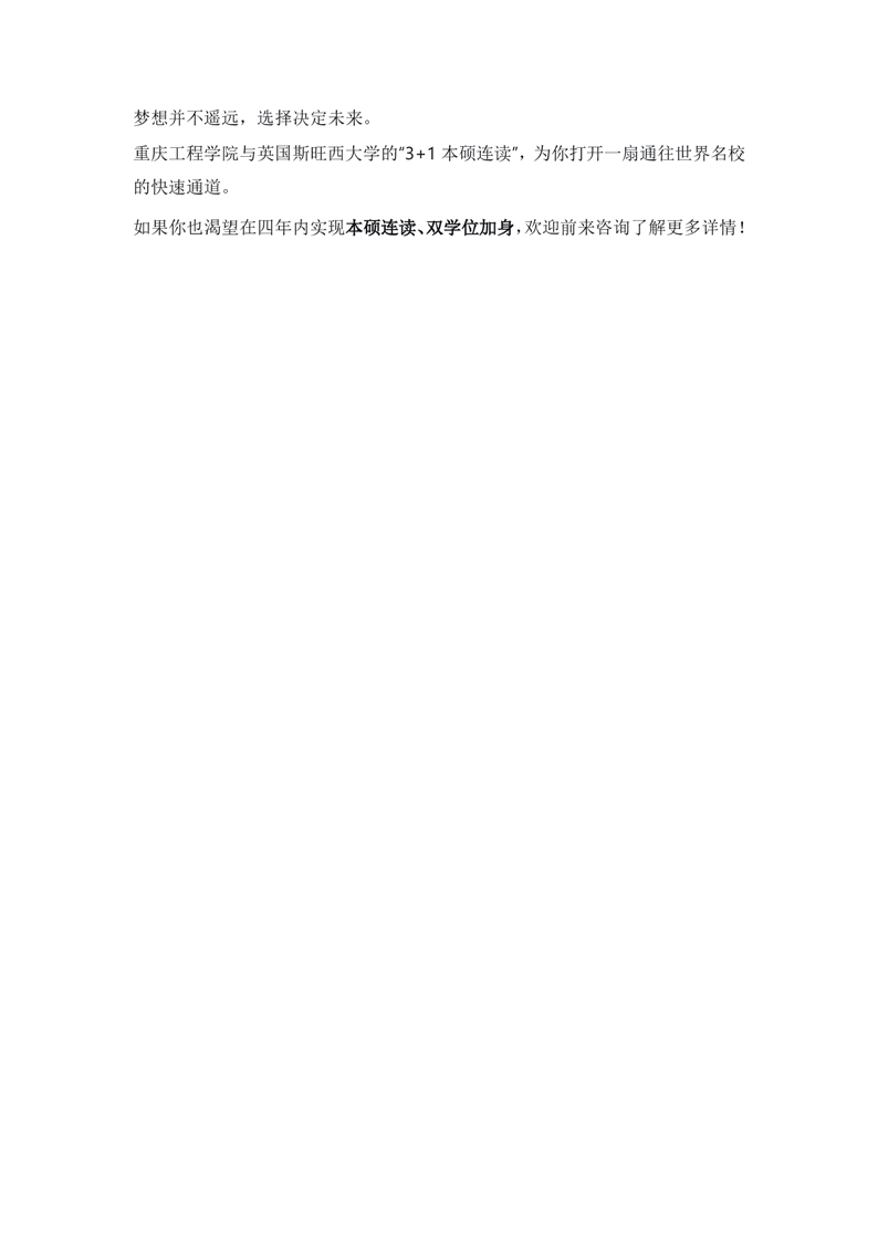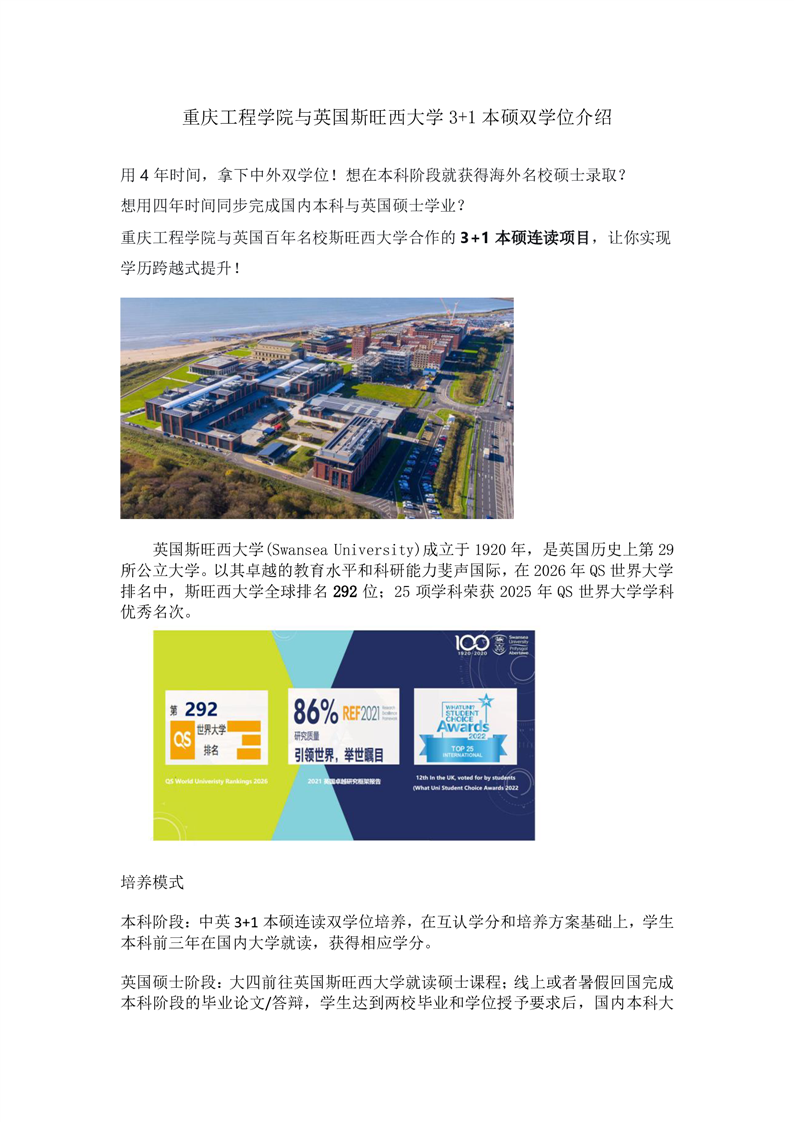 重庆工程学院与英国斯旺西大学3+1本硕推文