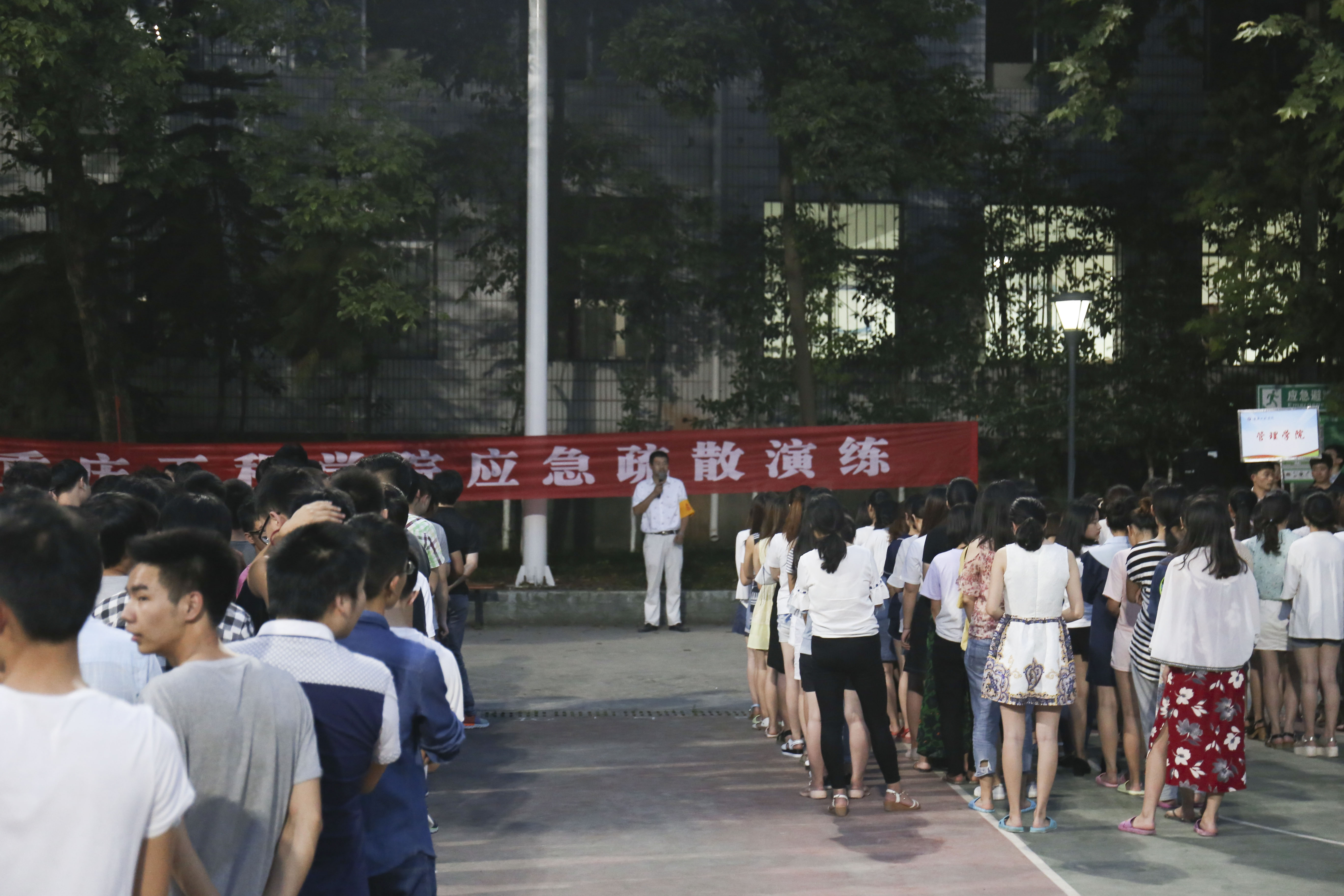 本网讯(保卫处 罗心智)为增强师生防震减灾意识,提升应急反应、自救互救能力,特别是夜间休息放松时的安全意识,确保师生在破坏性地震发生时沉着冷静、迅速有序地进行紧急避震疏散,保障生命安全。6月7日晚,在学工部邹均部长、保卫处程国园处长以及软件学院书记胡海燕和管理学院书记熊力的严密组织和师生积极配合下,我校开展了一场地质灾害疏散演练。