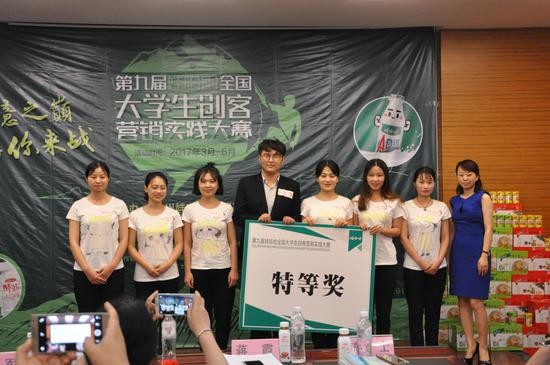 本网讯(管理学院  朱凤)6月24日,第九届娃哈哈全国大学生创客营销实践大赛重庆赛区省级决赛(以下简称“大赛”)在西南大学成功举办。我校管理学院市场营销专业同学凭借扎实的专业水平,完美的现场表现征服了在场评委和嘉宾,夺得了本次大赛特等奖。