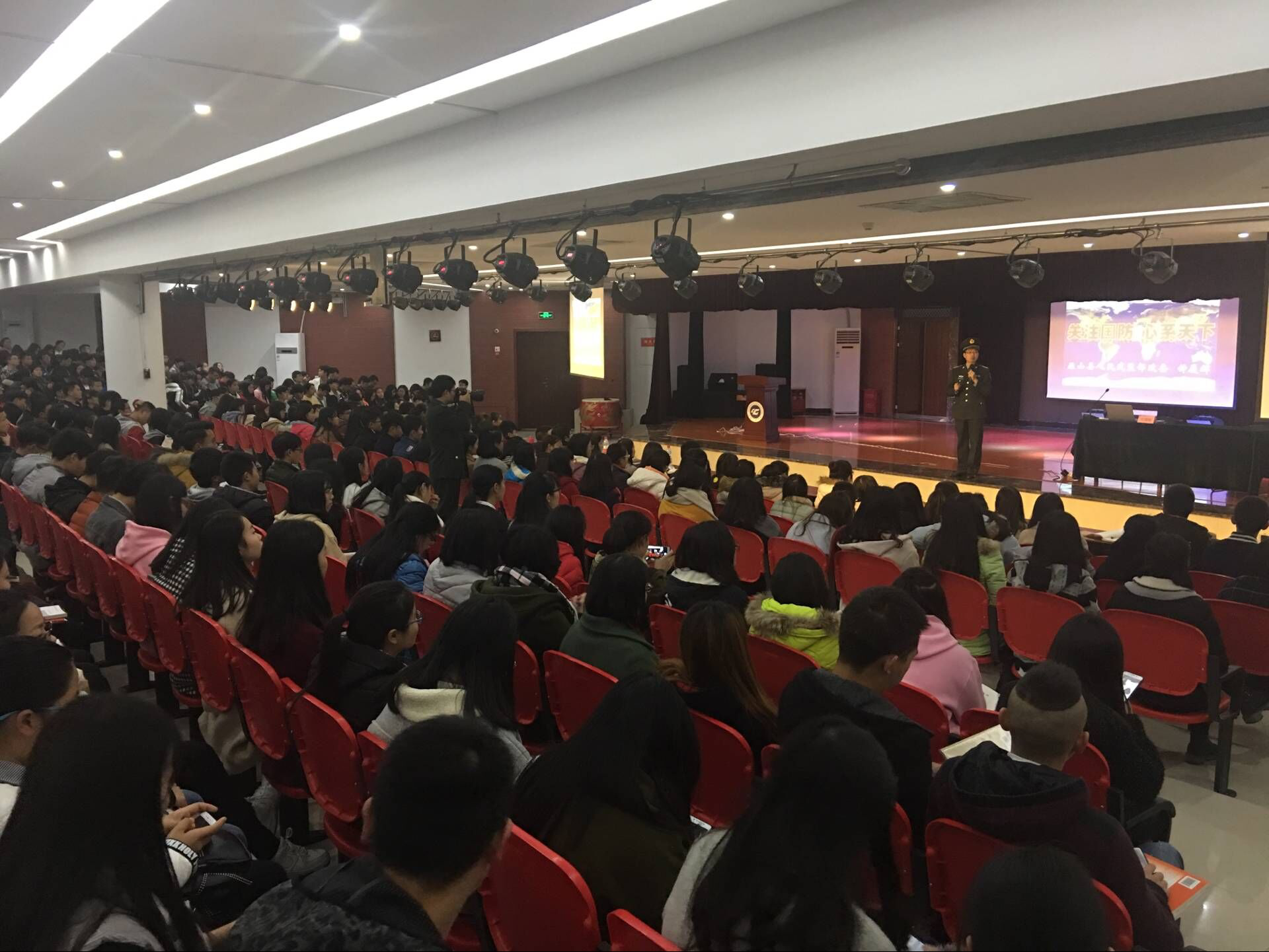 活动邀请巫山县人民武装部政委钟履辉上校,从我国武装力量概况、国际安全形势两大方面,结合一幅幅精美的图片、一个个鲜活的案例开展教育,引导广大青年学生坚定理想信念,增长生存本领,锤炼品德意志,做一名胸怀国家、心系天下的有志大学生。