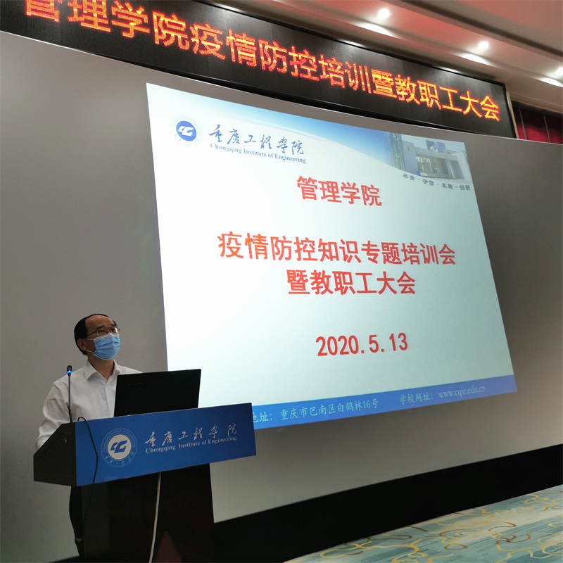 本网讯(文/图 管理学院 宋方伟)5月13日下午,我校管理学院在办公楼阶梯报告厅召开了全院疫情防控专题培训会暨全院教职工大会,学院全体教职员工参加。