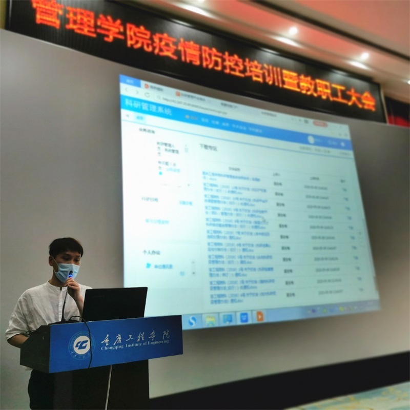 副院长陈可对科研平台的使用操作进行了详细介绍,要求全院接下来要完成的重点工作,包括近期内做好毕业论文(答辩)第二阶段工作以及科研项目申报工作,相关教师要在科研平台录入2019-2020学年各项教科研成果;全院要做好2020届本科毕业设计(论文)二次答辩工作,指导教师根据第一次答辩通报结果开展后续评阅、装订和装袋,认真指导参加二次答辩学生的论文修订;组织开展2020年综合性、设计性、创新性实验项目认定工作,各专业要做好前期准备,各系部尽快整理好过程材料以便等待验收。