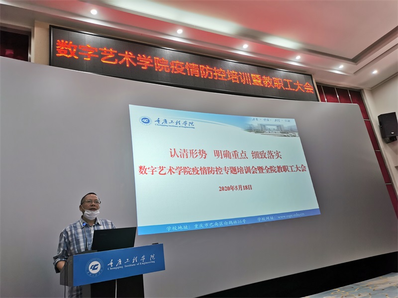 本网讯(文/图 数字艺术学院 孙建)为扎实做好学生返校复学后的各项工作,5月18日下午,数字艺术学院召开疫情防控培训暨全院教职工大会,学院全体教职工参加。