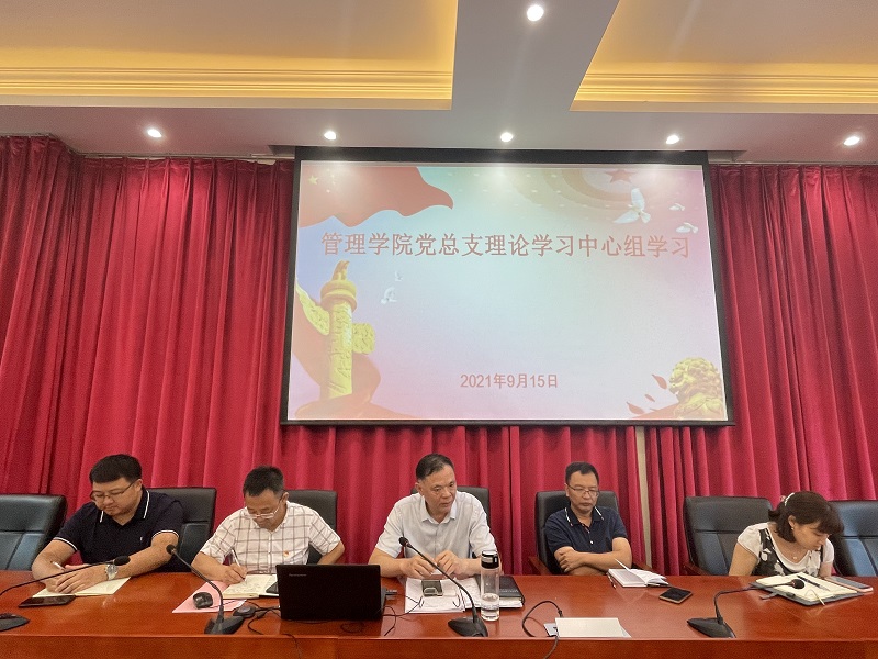 本网讯(文/图 管理学院 荣菁菁)为认真学习贯彻习近平总书记在庆祝中国共产党成立一百周年大会上的重要讲话精神,提升管理学院党总支理论学习中心组党员对习近平总书记“七一”重要讲话精神的理解水平,管理学院党总支邀请学校党委委员桂国庆校长于9月15日在办公楼206会议室,为管理学院党总支理论学习中心组宣讲习近平总书记“七一”重要讲话精神。管理学院党总支委员,各党支部书记、组织委员,行政班子成员,各系各科室负责人,民主党派代表参加学习,管理学院党总支书记刘达斌主持宣讲学习。