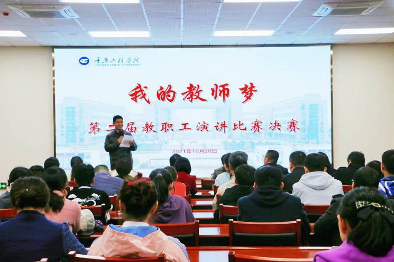 本网讯(文/ 校工会 邓俊梅 图/ 校工会 邓俊梅 大学生记者团 张芳宁)为进一步牢记“立德树人”初心、“为党育人、为国育才”使命,充分展现新时代重工教师“有理想信念、有道德情操、有扎实学识、有仁爱之心”四有好老师形象, 10月20日下午,我校在办公楼201第四会议室举办了第二届“我的教师梦”教职工演讲比赛决赛。此次大赛由重庆工程学院主办,学校工会承办。副校长王琼花、纪委书记兼工会主席唐小勇、校长助理王建东、以及各二级学院分工会主席出席了活动。教师、学生代表共百余人到场观看比赛。