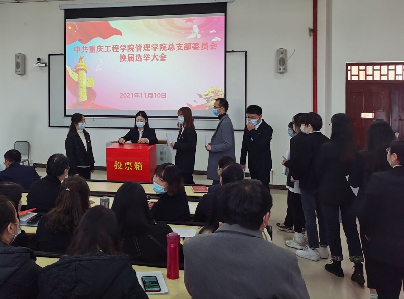 本网讯(文/图 管理学院 荣菁菁)根据《中国共产党章程》《中国共产党普通高等学校基层组织工作条例》《中国共产党基层组织选举工作条例》要求,结合学院党建工作实际, 11月10日13时,管理学院党总支在6204教室召开了换届选举大会。本次会议由管理学院专职组织员荣菁菁同志主持,全院党员参与。