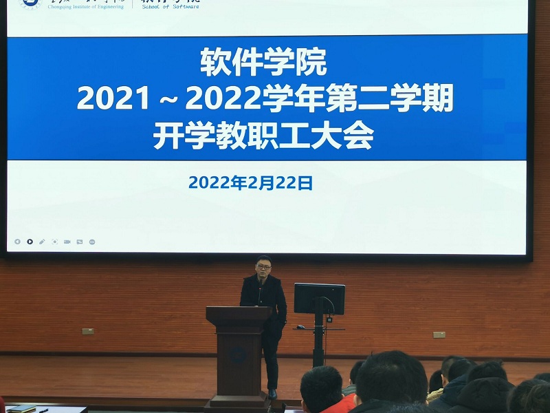 最后,院长李华平对学院人员变化、教研室主任任命等人事调整进行说明,并就学院年度重点工作进行补充和强调。他指出,软件学院要以学校本科合格评估为契机,强化内涵建设,抓好学院专业建设、课程建设、校企合作及学生就业等工作,确保评估各项建设工作出色完成。2022年是学院发展史上的关键一年,全体教职工要凝心聚力、克服困难,保持赶考状态,做好敢打硬仗、能打胜仗的充分准备,竭尽所能,把学院各项工作推进好,以扎实的基本功和优异的表现交上软件学院的优异答卷!任重道远,一起向未来!