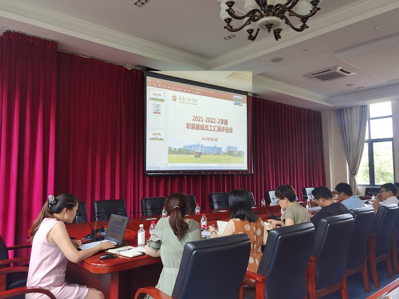 本网讯(文/图 人事处 许欢欢)7月13日下午,人事处在行政楼第五会议室组织召开了2021-2022学年第二学期职能岗位星级员工评选会。评选会由教师发展中心副主任张晓颖主持,与会人员有评选工作领导小组成员和8位参评候选人。