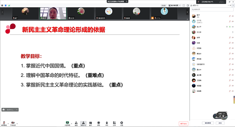本次测试按学科分为5个会场,通过腾讯会议平台展开。专家评委由15位校督导和院督导组成。参与测试的老师来自11个教学单位共73人。每位教师现场讲授15分钟的教学设计,并抽签完成5分钟的答辩。这是新教师入职我校,经历了一个学期的课堂教学实践锻炼后,接受的一次转正前的教育教学能力测试。
