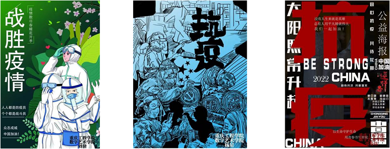 2. 这是一组以防疫海报为主的作品。数艺学子以笔为器,以墨为物向抗疫英雄、向一个个逆行者致敬。