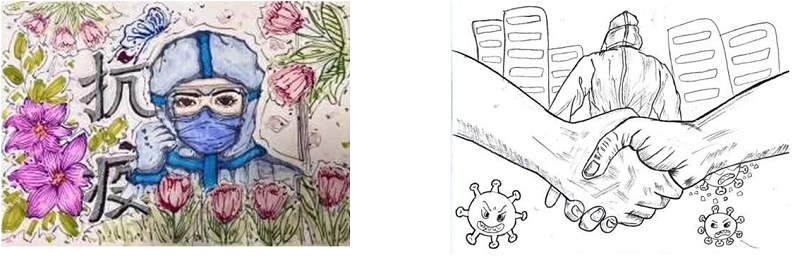 本网讯(文/图 数字艺术学院 周思琦)疫情牵动人心,艺术凝聚力量。特殊的11月,重庆全面的疫情攻坚战打响了。为致敬在疫情中的逆行者、勇于奉献的志愿军,数字艺术学院学生第二党支部在11月开展了“以艺战疫,数艺学子在行动”主题党日活动。期望通过创作抗疫题材作品,绘画重工抗疫图册,激发同学们抗击疫情的信心决心,向疫情中的英雄致敬,积极学习防疫科学知识,更是要静心上好特殊时期的网课。数字艺术学院学生第三党支部全体成员以艺术作品表达战疫决心,为重工加油!以下是部分代表作品展示: