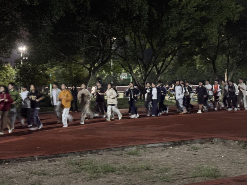 同学们自发集结于绿茵场中,以一张张充满活力的集体合影拉开了夜跑序幕。镜头定格下青春的笑脸,凝聚着浓浓的集体归属感。随着组织者一声令下,乐跑软件同步启动,夜跑环节正式展开。根据学生体能差异,本次夜跑挑战活动科学设置了挑战目标:女生完成1.6公里,男生挑战2.1公里。跑道上,同学们身着轻便运动装,有的奋力冲刺、挑战自我,有的结伴而行、相互鼓励。夜色中跃动的身影、此起彼伏的加油声、完成任务后的欢呼声,共同交织成一幅动人的校园夜景。不少同学表示,这种集体运动的氛围让他们感受到了“不是一个人在奔跑”的温暖,也让体育锻炼变得更具趣味性和感染力。