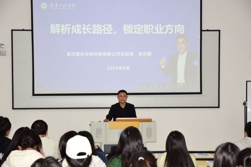 活动开始,与会师生共同观看了“渝职聘”平台功能介绍视频和大学生创新创业“一件事一次办”政策宣传视频,帮助同学们熟悉线上求职渠道和创新创业便利化服务流程。随后,活动进入核心的就业能力提升讲座环节。主办方特邀重庆惠风合创科技有限公司总经理、中国青年创业导师张庆朋担任主讲嘉宾。
