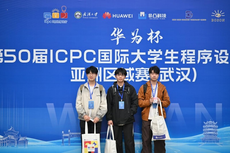 陈博恒(左2)带学弟参赛ICPC国际大学生程序设计竞赛(武汉)合照