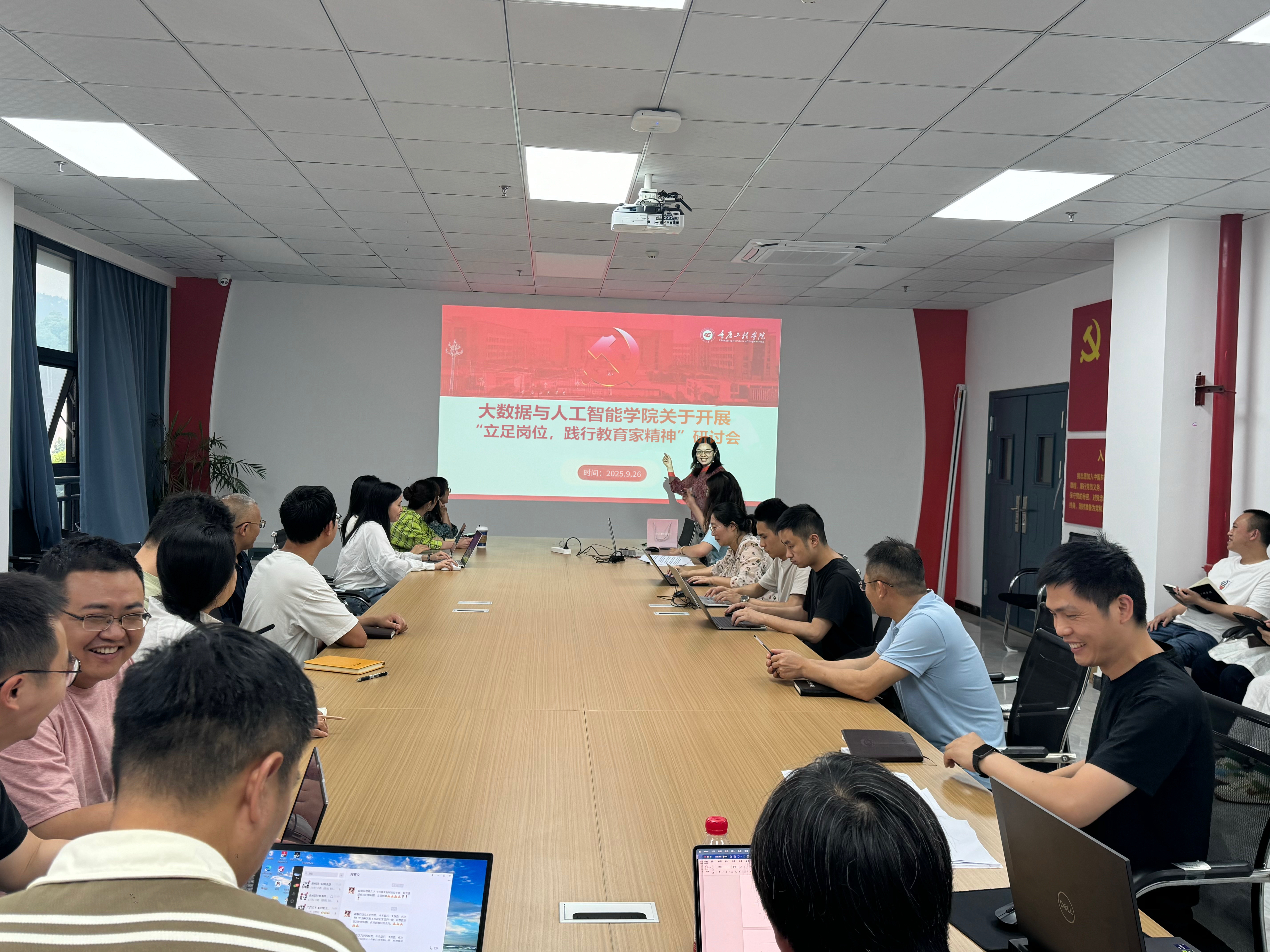 (本网讯 图/文 杨孟凡) 9月29日下午,大数据与人工智能学院在党政会议室(7205)召开“立足岗位 践行教育家精神”专题研讨会。学院全体教职工齐聚一堂,围绕“立德树人、铸魂育人”这一主线,共话新时代高校教师的使命与担当。会议由党总支副书记宁俊龙主持。
