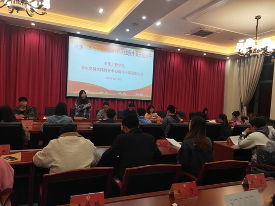 2020年10月25日,学生党员实践教育中心新任干部述职大会在新办公楼206会议室召开,学生党员实践教育中心全体干部参加本次会议。