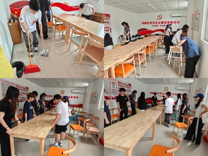 活动当天,参与队员准时签到后,服务队负责人结合工作站实际情况开展安全提醒与任务分工,保障清洁工作高效有序推进。服务过程中,他们充分发扬“不怕脏、不怕累”的劳动精神,分工协作、默契配合:有的专注搬移规整桌椅,优化空间布局;有的手持清扫工具,细致清理地面杂物;有的擦拭门窗、桌面及各类设施,不放过任何卫生死角。经过服务队的共同努力,和五工作站内外环境焕然一新,实现窗明几净、物品规整的良好效果。活动尾声,全体队员集中检查服务成果,统一清洗、归还清洁工具,确保活动闭环落实。