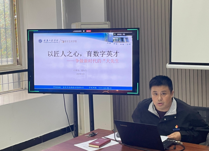 本网讯(文/图 数字艺术学院李毅)为全面落实教育部关于新时代教师队伍建设的部署要求,深入推进师德师风建设,10月29日下午,数字艺术学院以“立德树人 艺润匠心”为主题,举办师德师风建设专题论坛。学院全体教职工齐聚5207会议室,通过主题报告、经验分享、承诺签署等形式,共话师德修养与育人使命,为学院高质量发展注入精神动力。