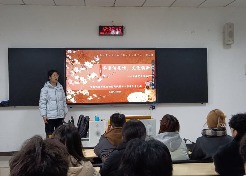 本网讯(文/图 徐汾淑/余浩)为深入传承中华优秀传统文化,巩固党建引领文化育人实践成效,淬炼学生党员责任担当与先锋本色。智能制造学院自动化与机器人工程学生党支部于12月19日在第六教学楼开展“冬至传亲情,文化铸心魂”主题宣讲党日活动。本次活动吸引支部党员、预备党员、发展对象、入党积极分子及入党申请人积极参与。
