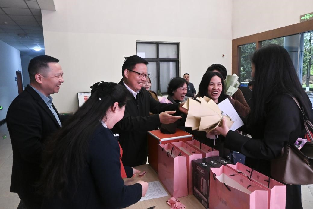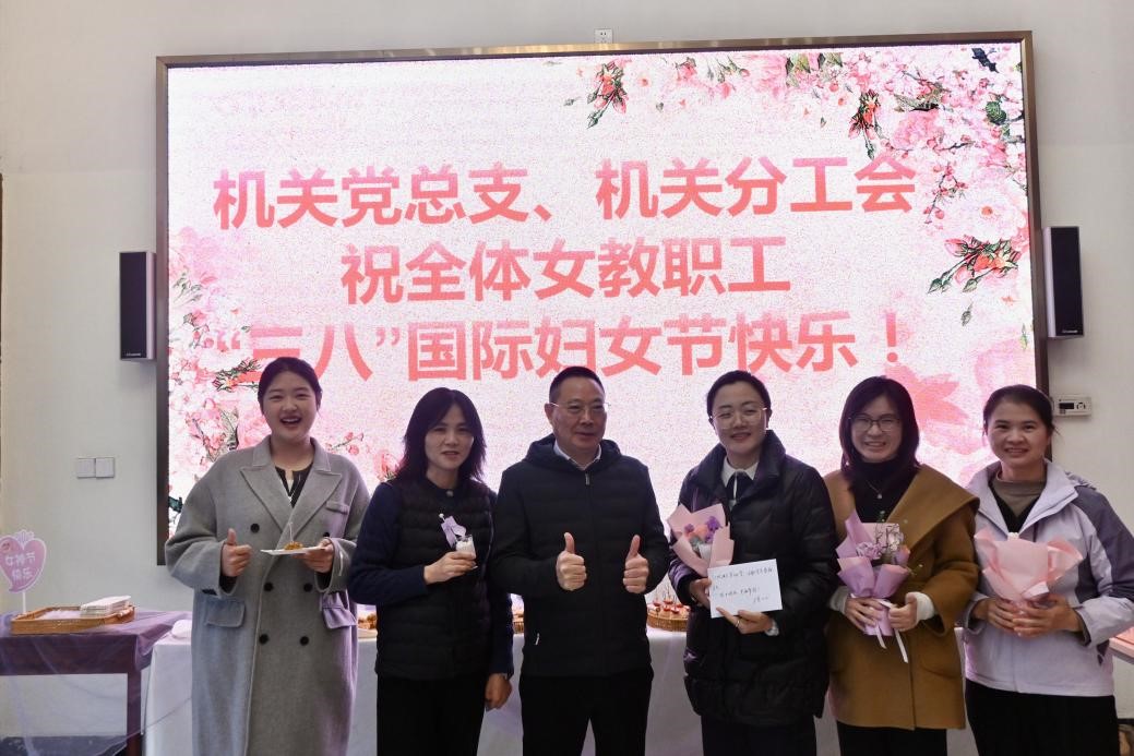 春和景明,万象更新。在“三八”国际妇女节来临之际,为切实关怀机关女教职工,传递学校的温暖与敬意,增强团队凝聚力与向心力,3月6日,我校机关工会在行政楼一楼隆重举办“三八”国际妇女节欢庆活动,为全体机关女教职工送上专属节日祝福,致敬坚守教育岗位、绽放巾帼芳华的女园丁们。