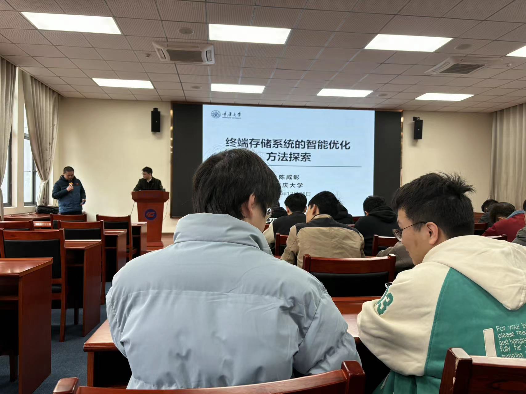 (图/文 大数据与人工智能学院 马凯)12月6日下午2点,重庆大学陈咸彰副教授在行政楼201报告厅作“终端存储系统的智能优化方法探索”的专题讲座。讲座由大数据技术与应用研究所所长何宏靖主持,大数据与人工智能学院50余名师生参加。