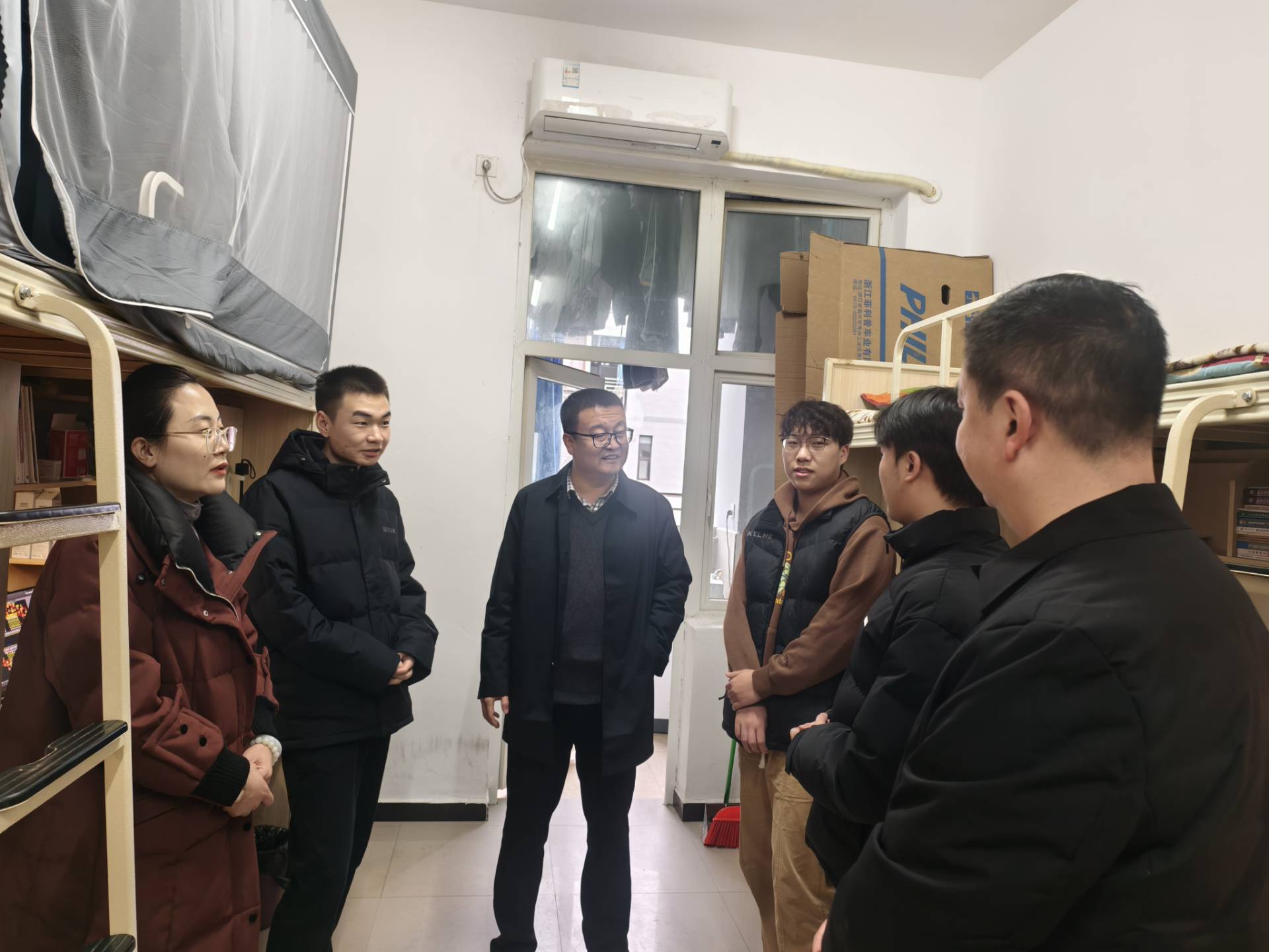 走访过程中,王建东与同学们亲切交谈,耐心听取大家在学业与生活方面的意见建议,并就期末复习安排、元旦假期返乡等事项给予温馨提示。针对假期留校学生,他特别叮嘱大家注意防寒保暖与宿舍安全,鼓励同学们合理安排假期时间,在校度过一个温暖、充实、有序的元旦。