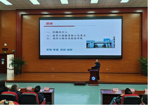 软件工程专业带头人李中学教授作了题为软件工程专业特色化办学之思考交流发言,对如何进行应用型本科专业建设,围绕软件人才面临问题、工程教育认证内涵及工作重点、专业如何转型升级进行了系统阐述,为软件工程专业未来发展建设指明方向。