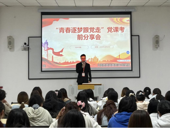 本网讯(文/ 软件学院 张鸿/黄思雨)为巩固党校培训学习效果、强化学院党性分子理想信念,助力以扎实知识迎接党课考试,软件学院学生党员实践教育分中心于1030日在6203教室面向23级、24级入党申请人、积极分子、发展对象及预备党员,开展“青春逐梦跟党走”党校培训考前分享会。