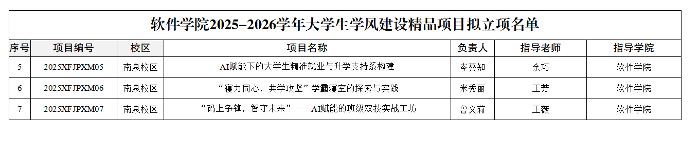 > 重庆工程学院软件学院关于2025—2026学年大学生学风建设精品项目立项评审结果的公示
