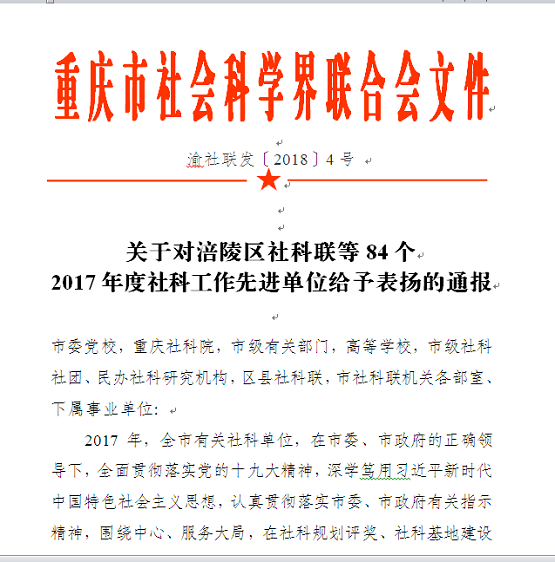 重庆工程学院中华文化动漫研发传播中心被评为2017年度社科工作先进单位