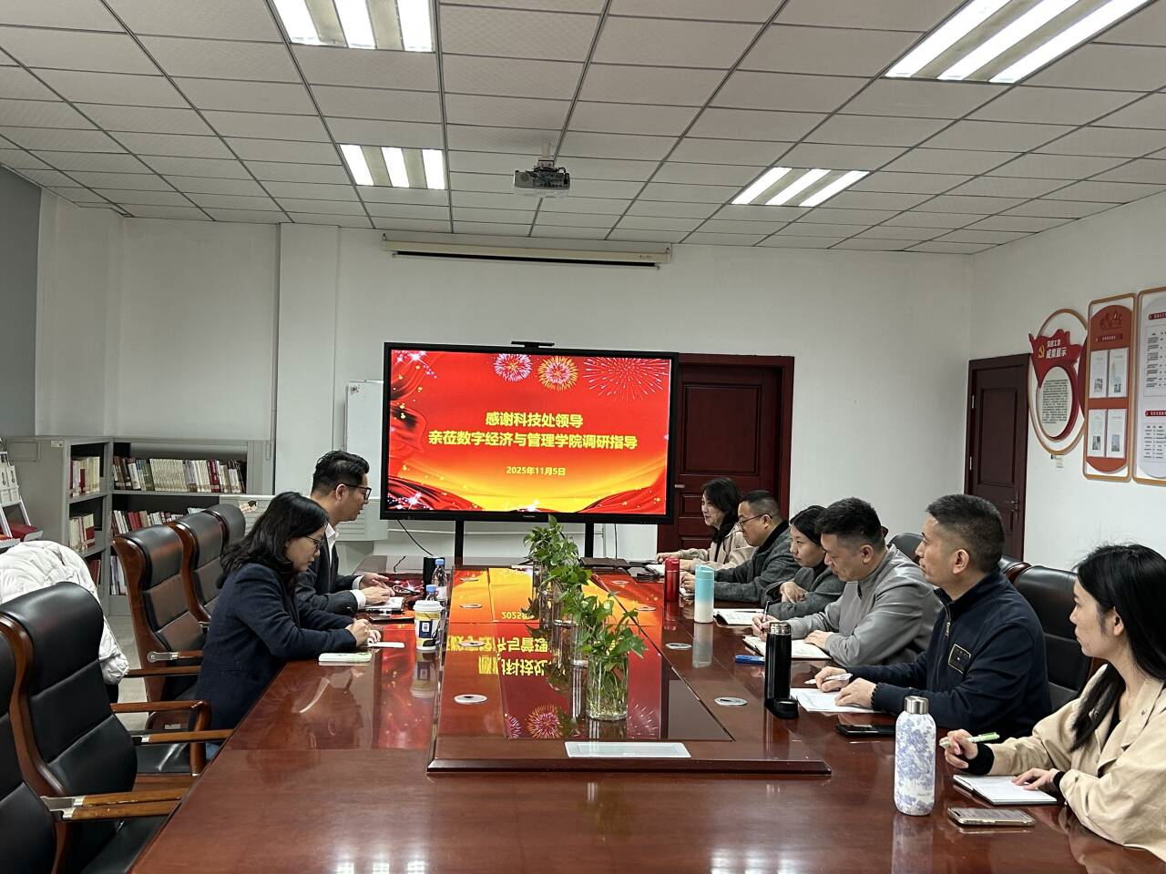 (文/图 数字经济与管理学院 李玲)2005 年 10 月 6 日,科技处汪俊良副处长、陈心悦老师到数字经济管理学院开展学科科研工作专项调研。调研会议在学院3413会议室召开,学院副院长李玲、徐先航,科研团队负责人王渝、刘婷婷、薛进凤及科研骨干唐菠参与调研。
