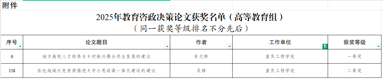 重庆工程学院在2025年教育咨政决策论文评选中喜获佳绩