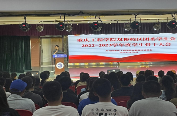 本网讯(文/李侑洪 图/邓代伟)金黄稻谷千层浪,累累瓜果十里香。2022年10月4日下午,在双桥校区报告厅举行了双桥校区团委学生会2022-2023学年度学生骨干大会,校区团委全体同学参加,会议由校团委副书记陈军主持。