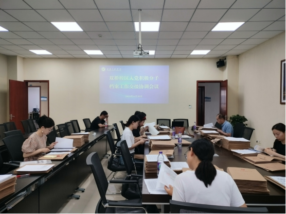 本网讯(文/图 刘加 )扎实做好两校区入党积极分子档案交接工作,确保入党积极分子档案的完整性和准确性,6月20日上午,双桥校区党工委召开了入党积极分子档案工作交接协调会议