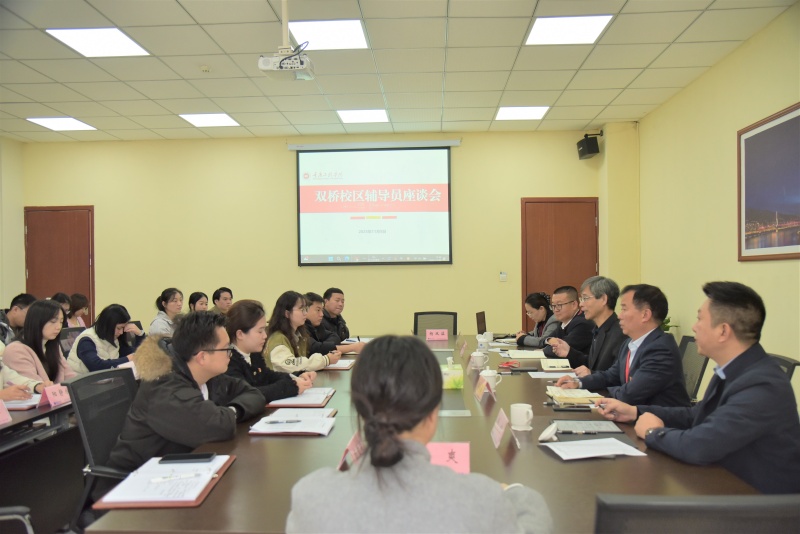 本网讯(文/ 双桥校区管委会学工办 杨世玲 图/ 双桥校区新媒体中心)11月5日,校长孙芳城率队赴双桥校区,通过辅导员工作座谈会与学生骨干座谈会,深入了解一线学工动态与青年学子需求,为校区高质量发展把脉定向。党委副书记、双桥校区管委会主任唐小勇,副校长王建东,校长助理、双桥校区党工委副书记邹均,学生处处长黄燕及校区学工办相关负责人参加座谈。